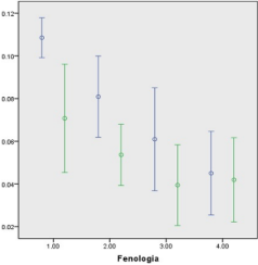 Prefloración | 0,0673 ab | 2,9396 b | 0,0652 a | 2,8723 b | 0,1404 b | |