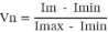 1. Teniendo el valor máximo del indicador (Imáx) haciendo referencia a la mejor condición de calidad de suelo (Valor normalizado del indicador: Vn = 1), donde Imax: valor máximo del indicador, Imin: valor mínimo del indicador.