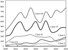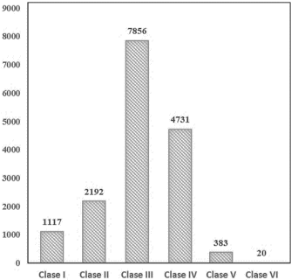 Clase III | 313 | 432 | 571 | 682 | 570 | 776 | 567 | 482 | 695 | 577 | 727 | 686 | 778 | 7856 |