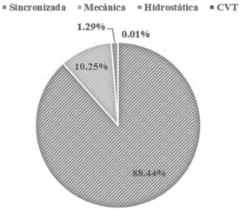 En la Tabla 4 se muestra el número de tractores agrícolas caracterizados de acuerdo con su sistema de transmisión. Los tractores agrícolas con transmisión sincronizada representan el 88,44% del total, es decir, con 14415 unidades. Dicha transmisión ha superado las expectativas en el sistema de producción agrícola, debido a su mejor desempeño, mayor capacidad operacional del conjunto tractor-implemento y eficiencia en la transferencia de potencia. La transmisión mecánica aún está siendo utilizada, pero en un menor número y representa el 10,25% del total, es decir, con 1671 tractores. Los tractores con tracción simple son mayormente utilizados para labores livianas y de transporte y no exigen un mayor esfuerzo. Los tractores con transmisión hidrostática representan el 1,29% con un total de 211 unidades. En algunos casos estos tractores pueden ser sobre orugas o del tipo vehículo utilitario o multiuso, es decir, diseñados para realizar diversas labores como: carga, limpieza, mantenimiento de parques y jardines o nivelación en pequeñas áreas de trabajo.