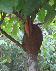 En ambos cultivos, la mayoría de las colonias de Nasutitermes spp. se localizaron en la superficie externa de los tallos y ramas, formando túneles de barro característicos, Figura 4, 5.
